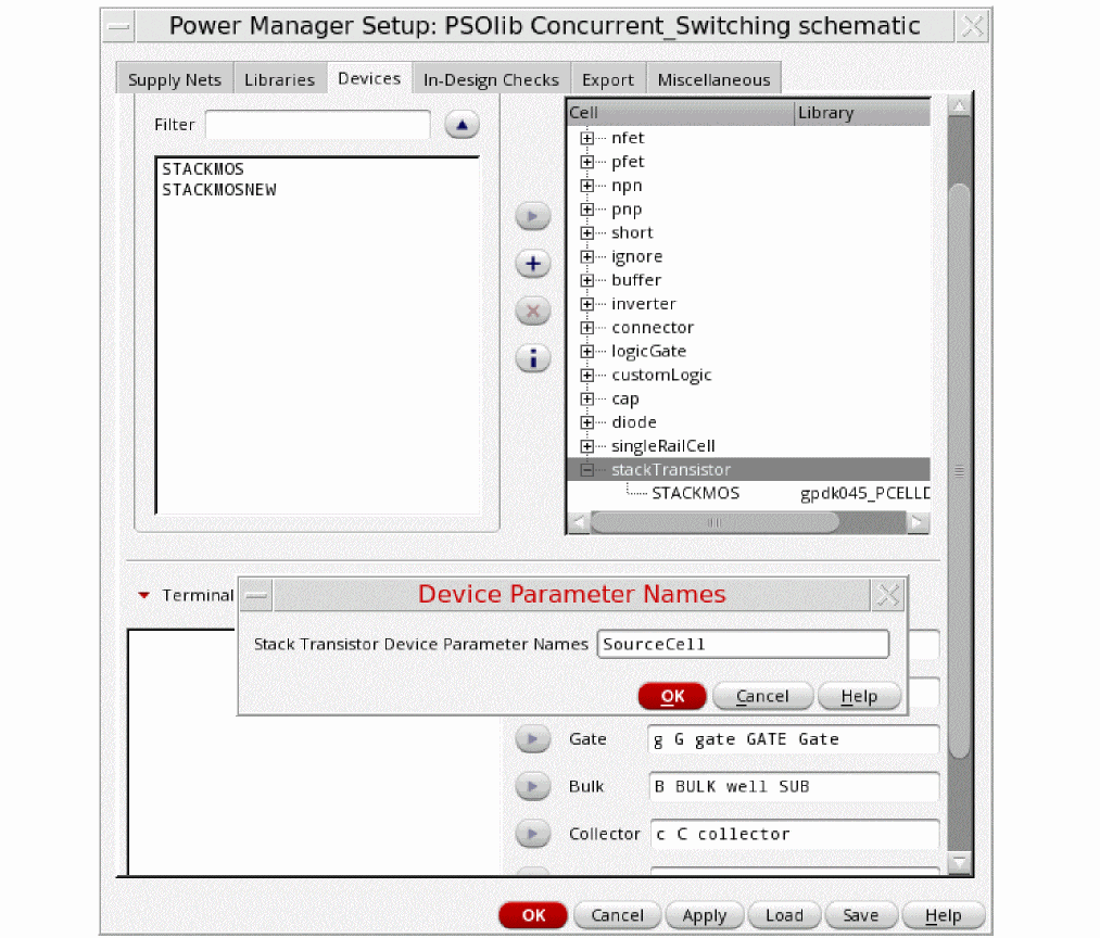 A parameter on the device Pcell master defines the device type used inside for stacking.