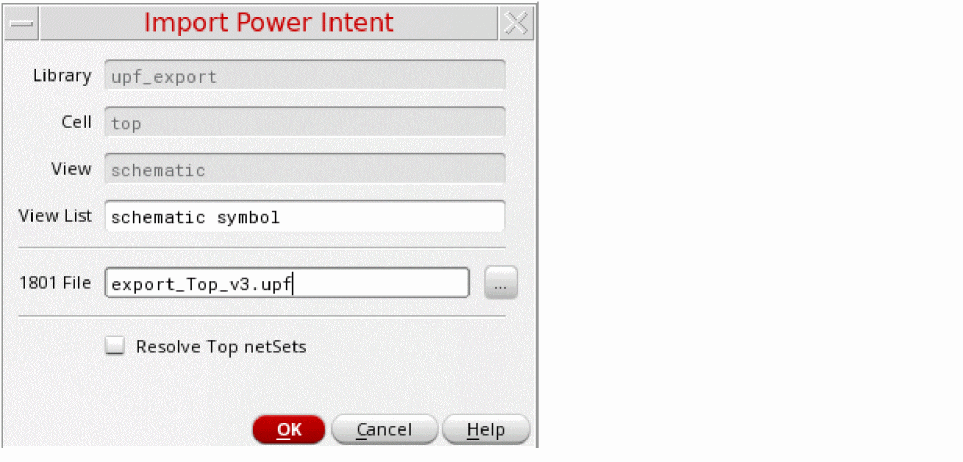 Click Power Manager – Import Power Intent. It opens the Import Power Intent form. The currently opened cellview details are specified in the form automatically.