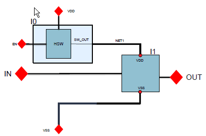 Consider the following design that does not have the user-defined supply sets and power domains specified in the setup: