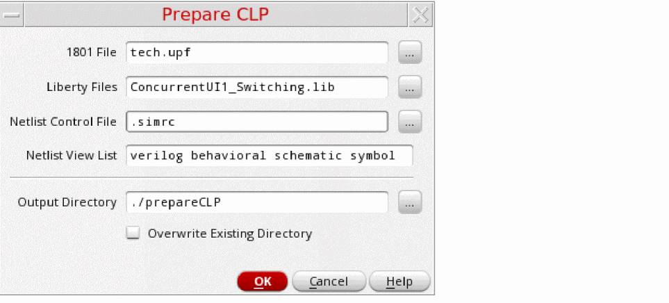 [Optional] Otherwise, before running the CLP, use the Prepare CLP form to generate the 1801 file, Verilog netlist, and CLP dofile at the specified path.
