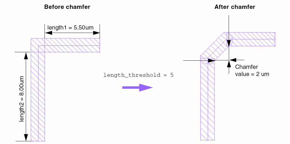 create_chamfer_wire -all -layer M2 -length_threshold 6.0 -chamfer_value1 {2.0 0} -chamfer_value2 {3.0 0} -inner_chamfer false