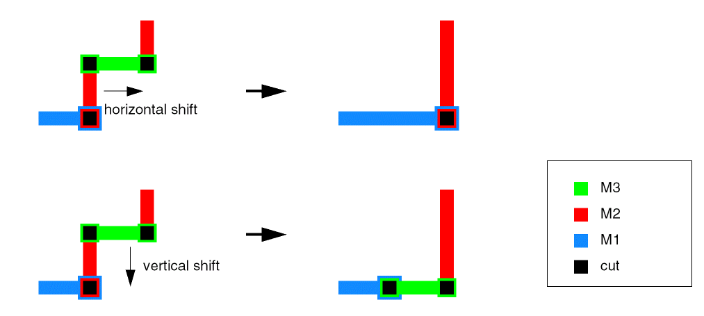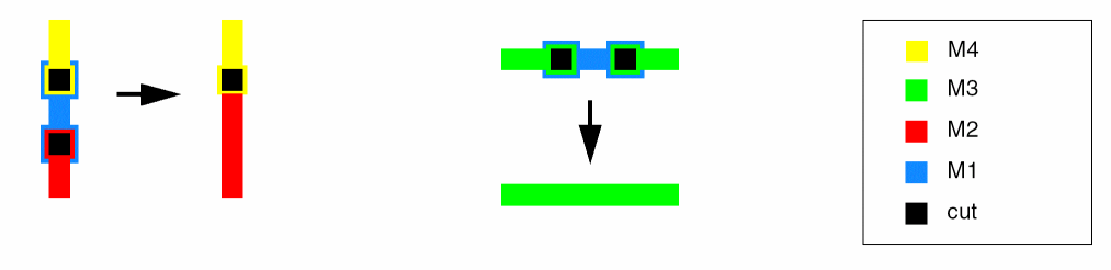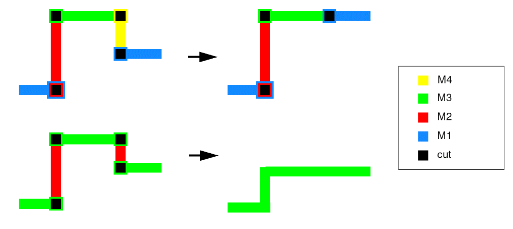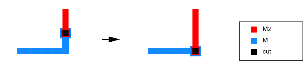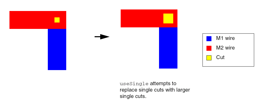 Uses constraint values for the upper metal to maximize the via using a large cut via.