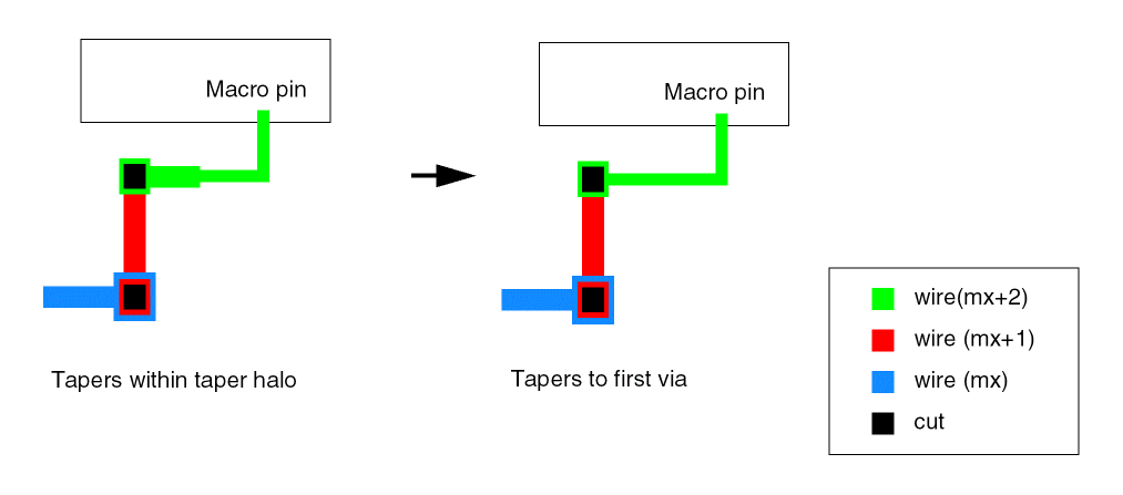 If this argument is given with no setting or a setting other than none, tapering will apply from the pin to the first via, and cuts will be maximized after routing, where possible, according to the specified setting):