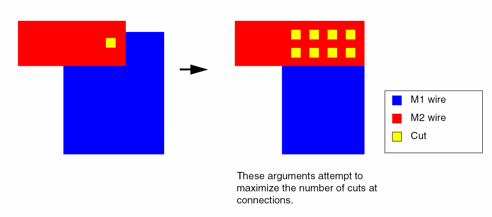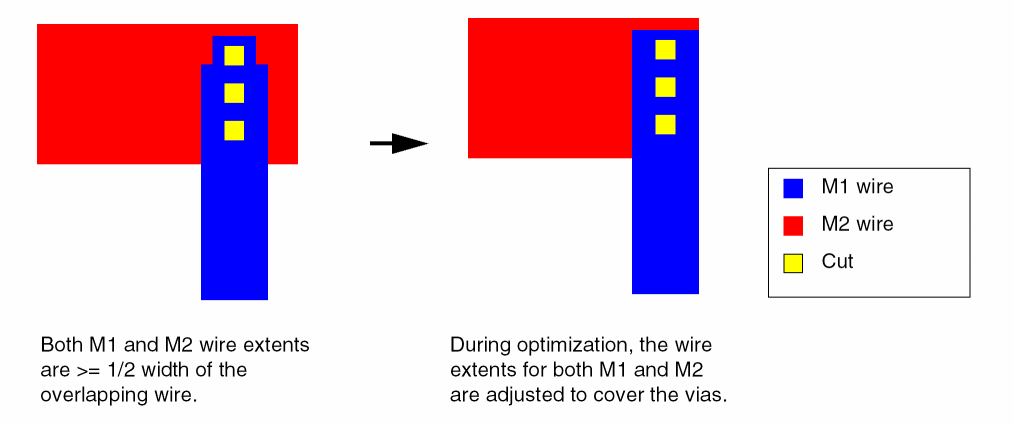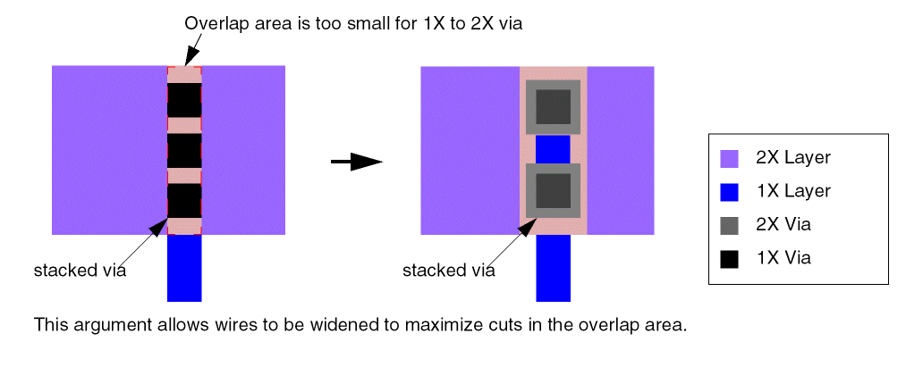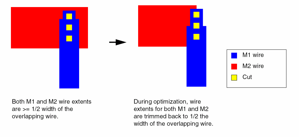 When true, permits the wires to be widened in the overlap area between connecting wires to enable the use of maximized cuts.