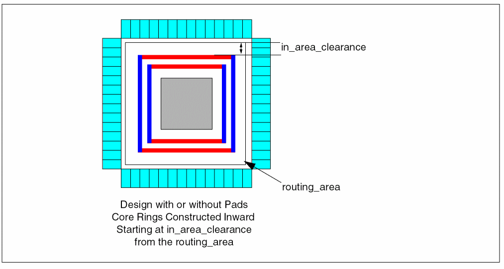 If the design has peripheral pads, the core rings are created inward starting at pad_clearance from the pads or, if peripheral pads do not exist, the core rings are created inward starting at pad_clearance from the design bounds.