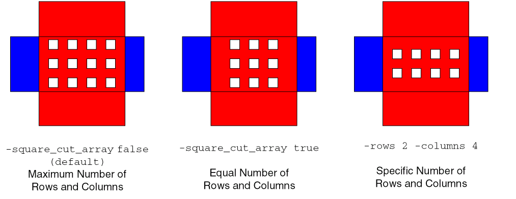 Specifies the number of columns in the cut array for all vias. If a single value is given, it applies to all cut layers. If a list is specified, there must be one value given for each cut layer between -from_layer and -to_layer, and the first value refers to the lowest cut layer. If the cut array with these dimensions cannot fit within a via area, no via is created for that metal intersection. Both arguments, -rows and -columns, must be given.