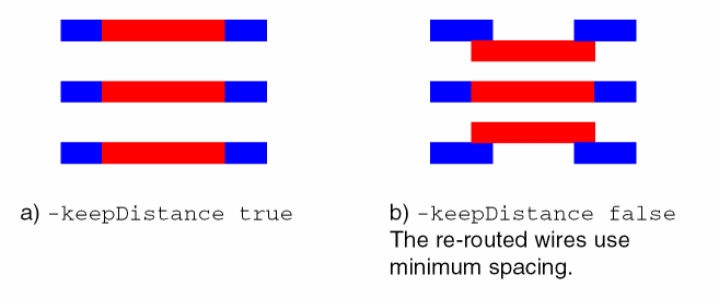 The following example re-routes wires on the Metal1 layer to the Metal2 layer for nets in the myNets set within the given region with perpendicular vias, keeping existing spacing between wires and discarding any re-routes that cannot be completed.