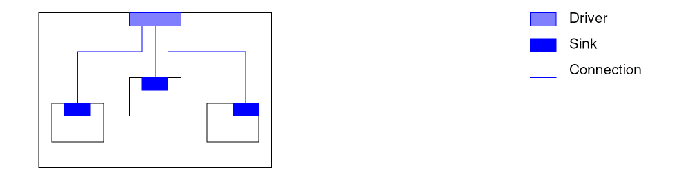 Routes nets that have one driver and multiple pins, or sinks. By default, each sink is connected directly to the driver as shown in the following figure.