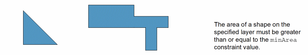 To specify the minimum area allowed for rectangular shapes on a layer, use the oaMinRectArea constraint.