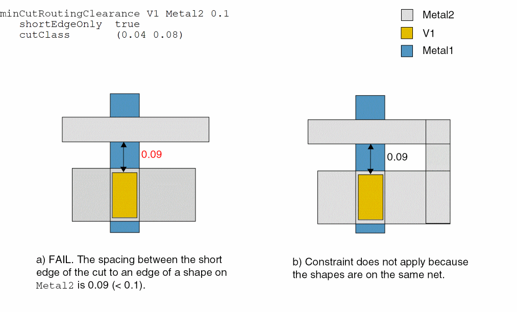 Example 1: minCutRoutingClearance with cutClass and shortEdgeOnly