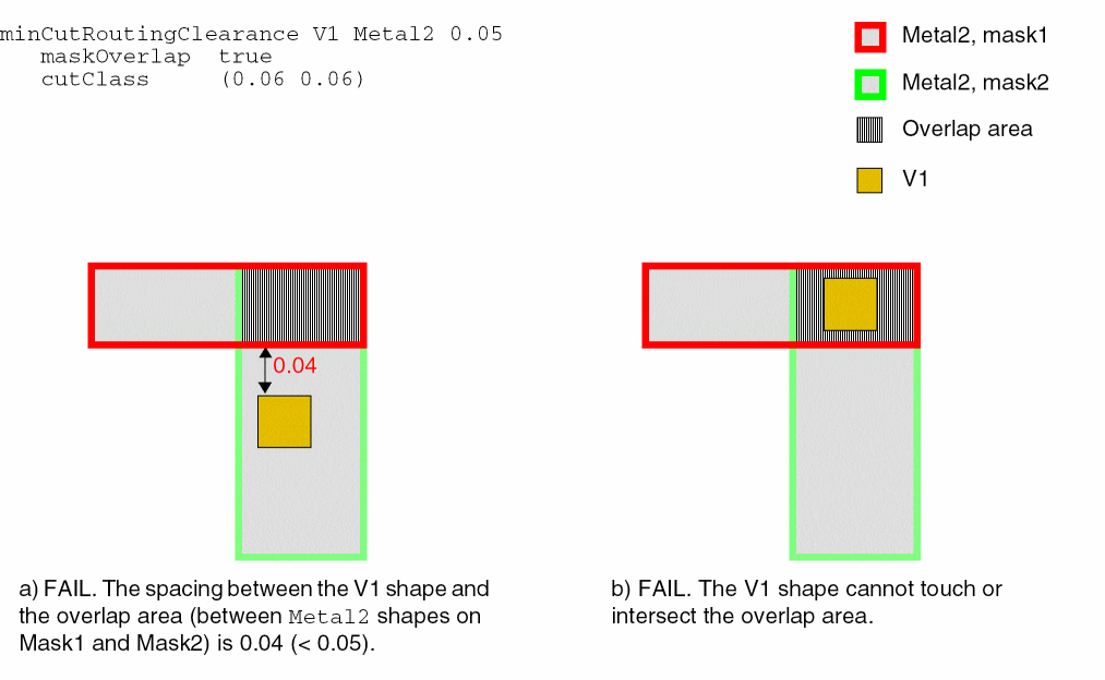 Example 4: minCutRoutingClearance with cutClass and maskOverlap