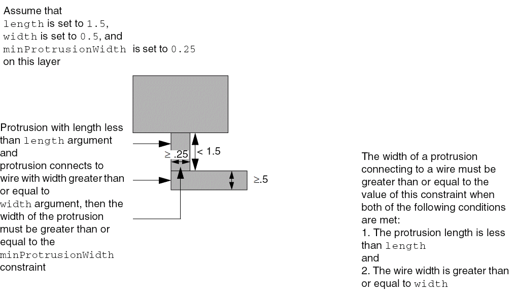 - The width of the wire the protrusion connects to must be less than or equal to the wireWidth in the constraint specification.