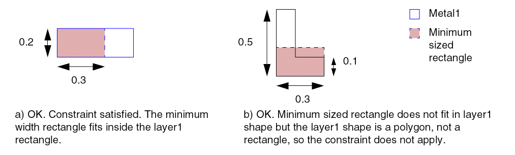 In some processes, the minimum allowed size for a shape is different for rectangular shapes as compared to non-rectangular shapes. The constraint can optionally apply only to rectangular shapes.