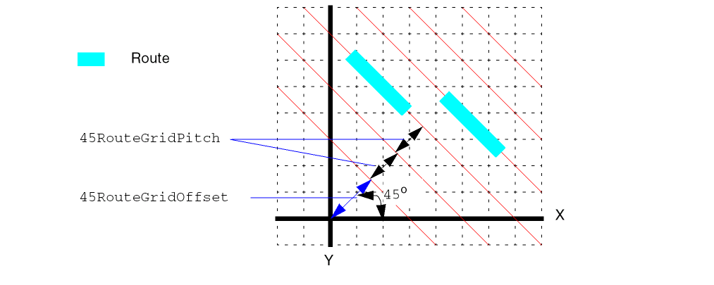 45RouteGridPitch constraints have a Value that represents the pitch as a diagonal distance in user units.