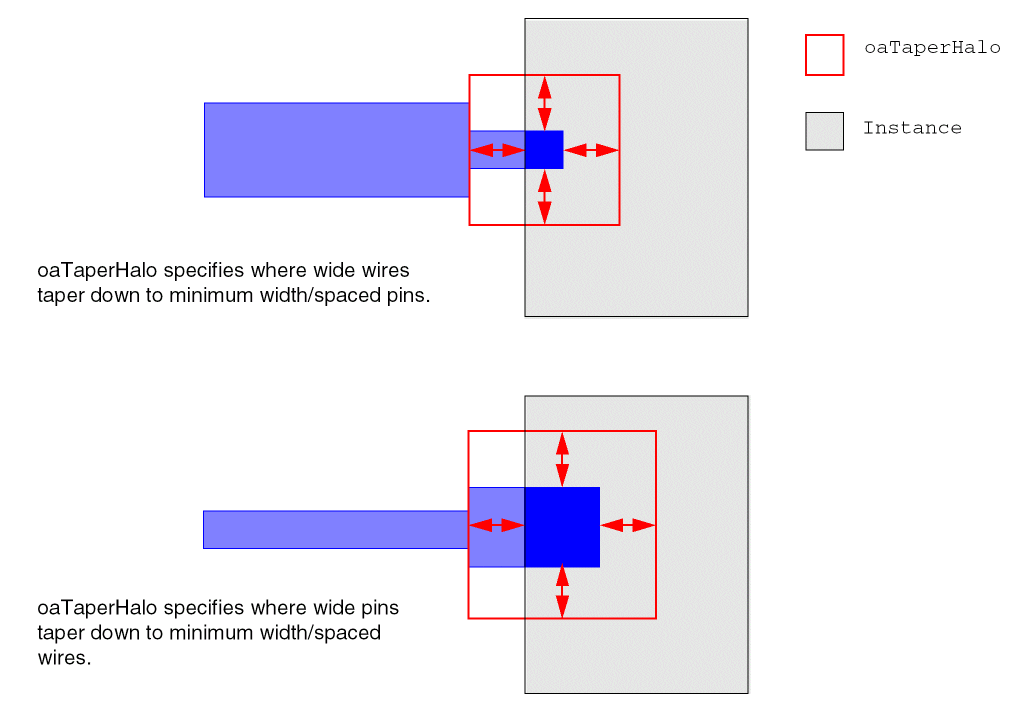 oaTaperHalo constraints have a Value that is the offset, in user units, around the pin shapes that represents the taper window.