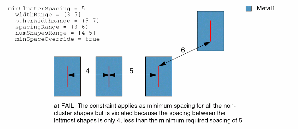 Constraint applies as minSpacing to the shapes which are not part of any cluster.
