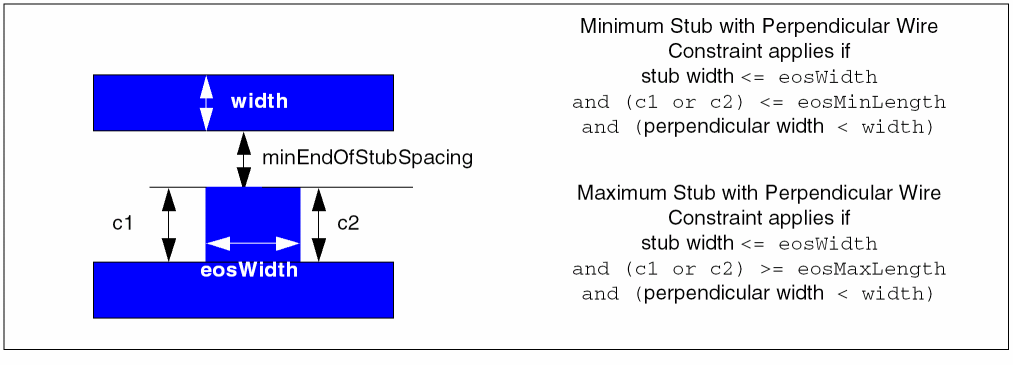 eosMinLength(Value) is the maximum length for one side of a minimum stub. The constraint applies only when one side of the stub is less than or equal to this value. -