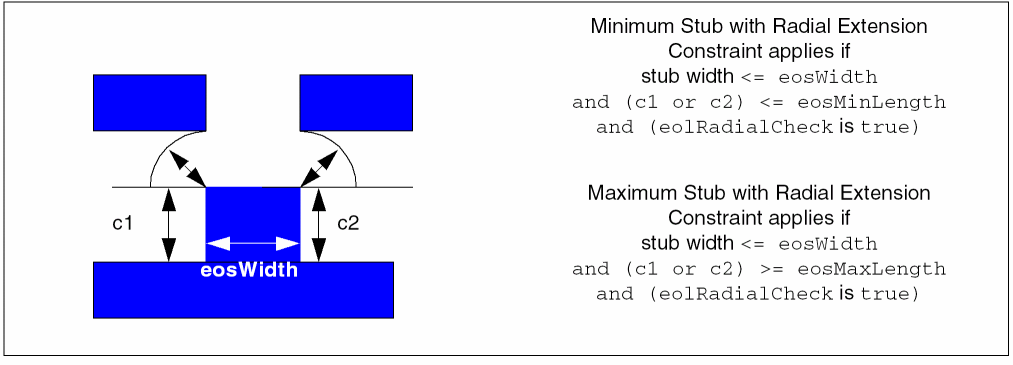 eolRadialCheck(BoolValue) is optional and enables radial checking from the stub end corners. This parameter is only checked whenwidth,eosJogDistance, andeosJogWidthare not given.
