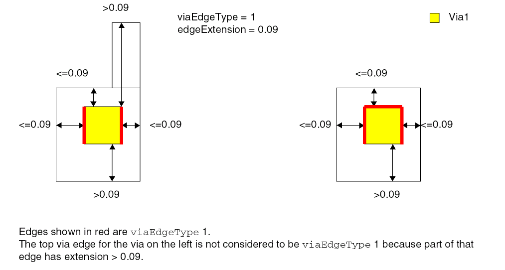 In this example, via edges with extensions less than or equal to 0.09 user units, will be assigned to viaEdgeType 1.