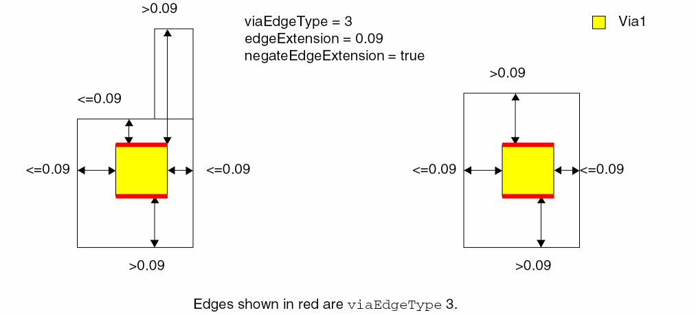 In this example, all via edges that do not have extensions less than or equal to 0.09 user units, are assigned to viaEdgeType 3.