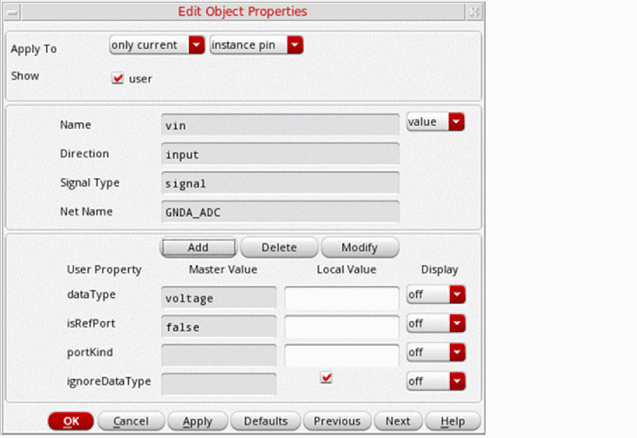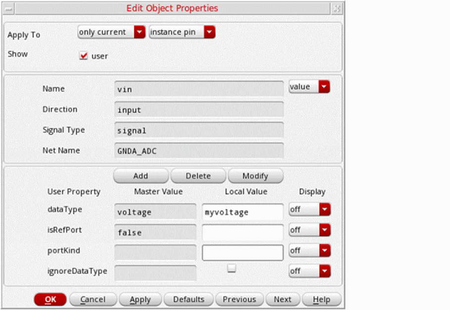 Additionally, you can modify the local values of the dataType, portKind, and isUnpacked port properties that are associated with a specific instance of a cell.