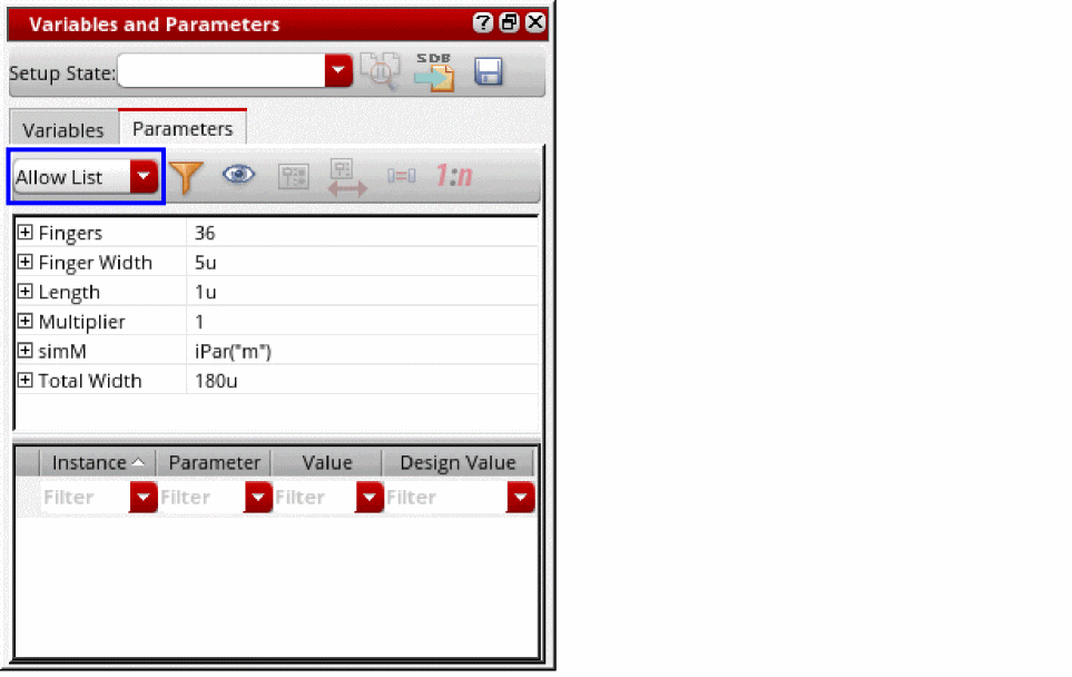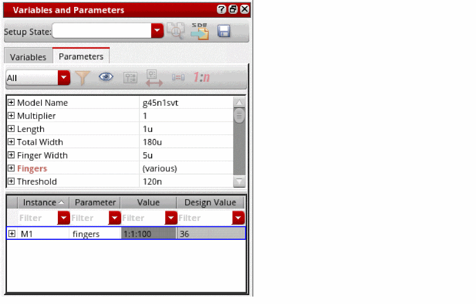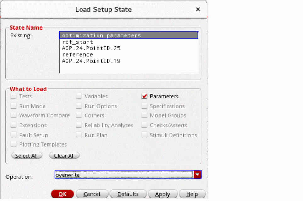 - Right-click a setup state, and then click Load to load the setup state. For example: optimization_parameter.