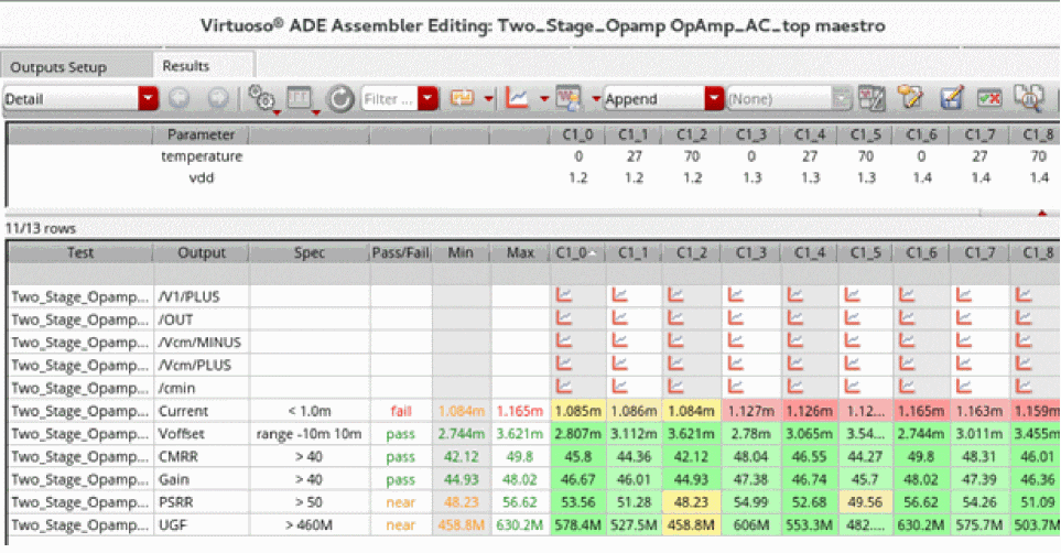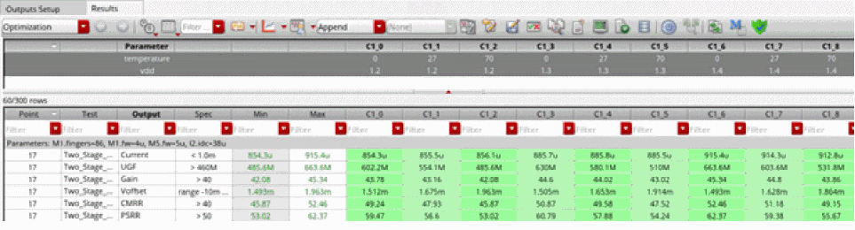 - Run a simulation for the design that you want to optimize. Ensure that the specifications have been defined for the outputs in the Outputs Setup tab in ADE Assembler.