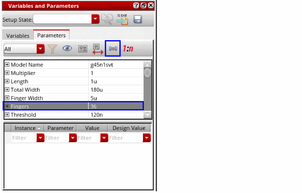 - Click a parameter, for example, Fingers, and then click the Match Parameters icon.