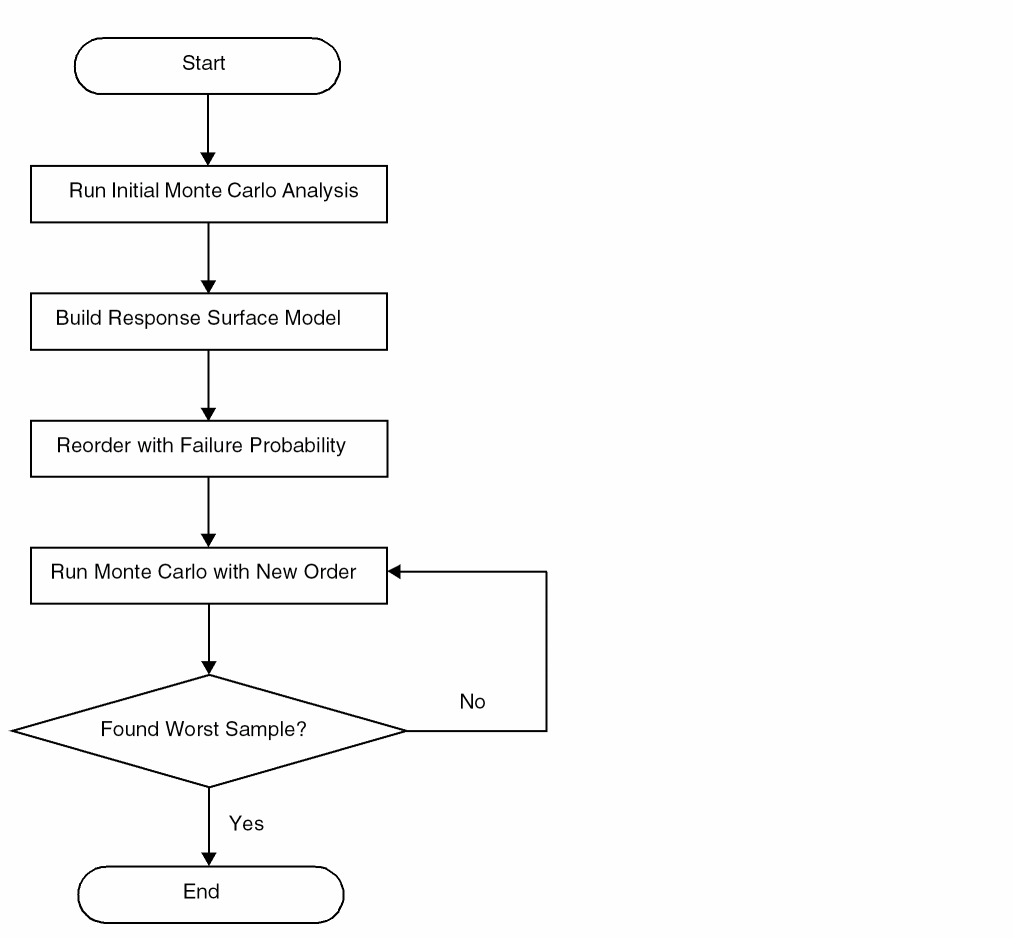 In the Worst Samples method, the points are reordered based on the response surface modeling and sampling is stopped when the worst sample is found for each specification. The statistical corners are automatically created from the worst samples.