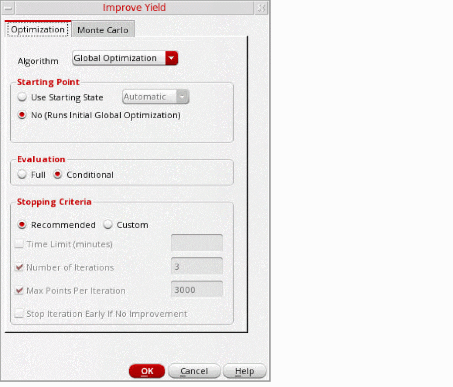 - To specify the number of sizing/Monte Carlo iterations, select the Number of Iterations check box and enter the number in the field.