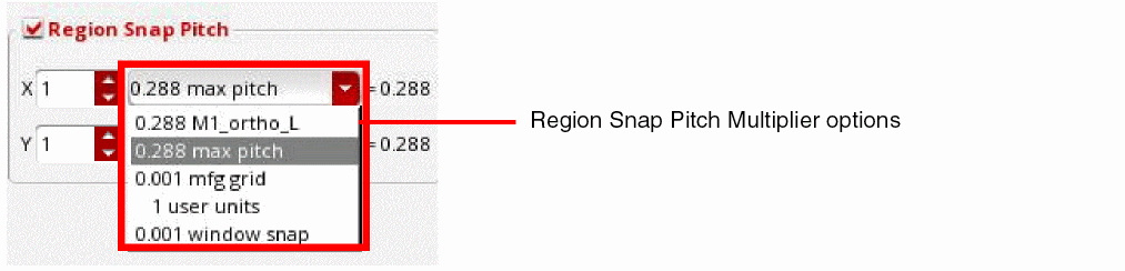 You can select the Region Snap Pitch check box to specify the X and Y attributes for the pitch.
