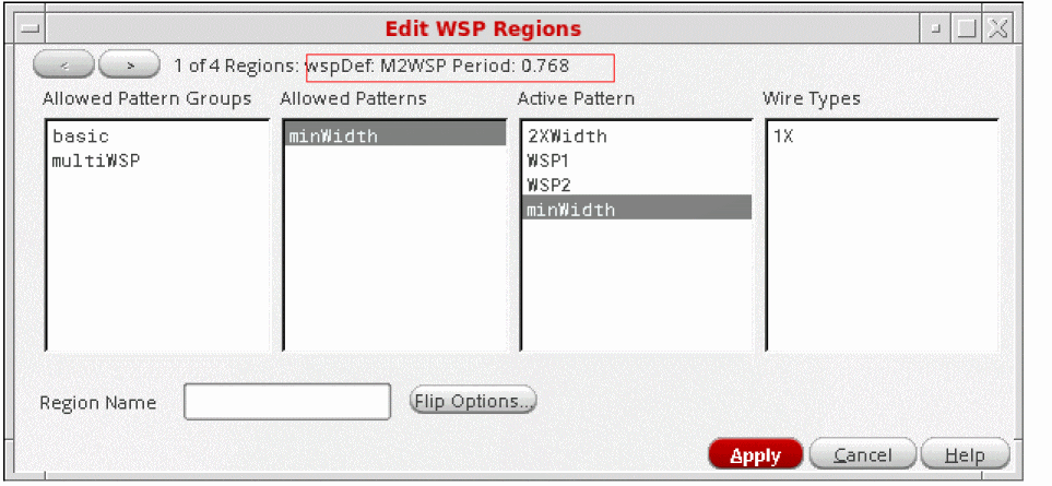 You can change the attributes associated with WSP regions such as the region name, allowed patterns and pattern groups, the active pattern, wire types, and repeat mode.