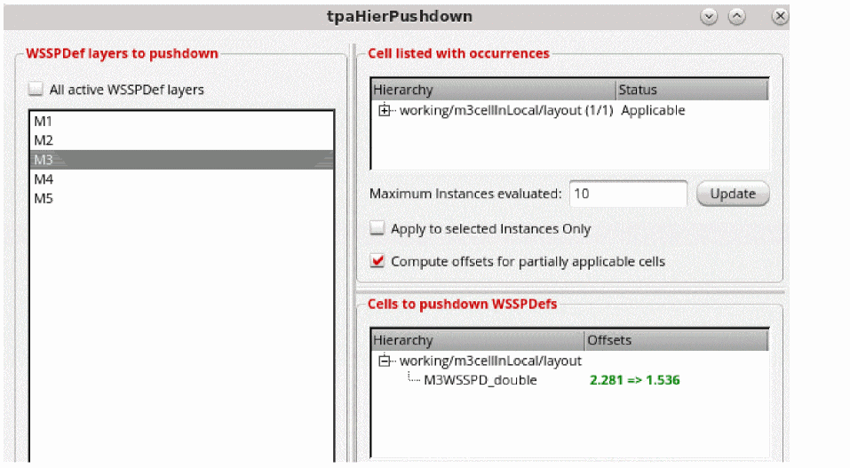 Select Apply to selected Instances Only or Compute offsets for partially applicable cells to select these options for the cell listed with occurrences.