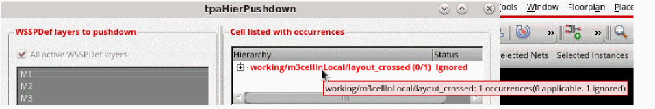 When you have instances that are inside local regions, they are considered for pushing down the WSP of the local region into the sub cell. If an instance crosses a WSP local region boundary, it is not considered for pushdown and is marked as Ignored.