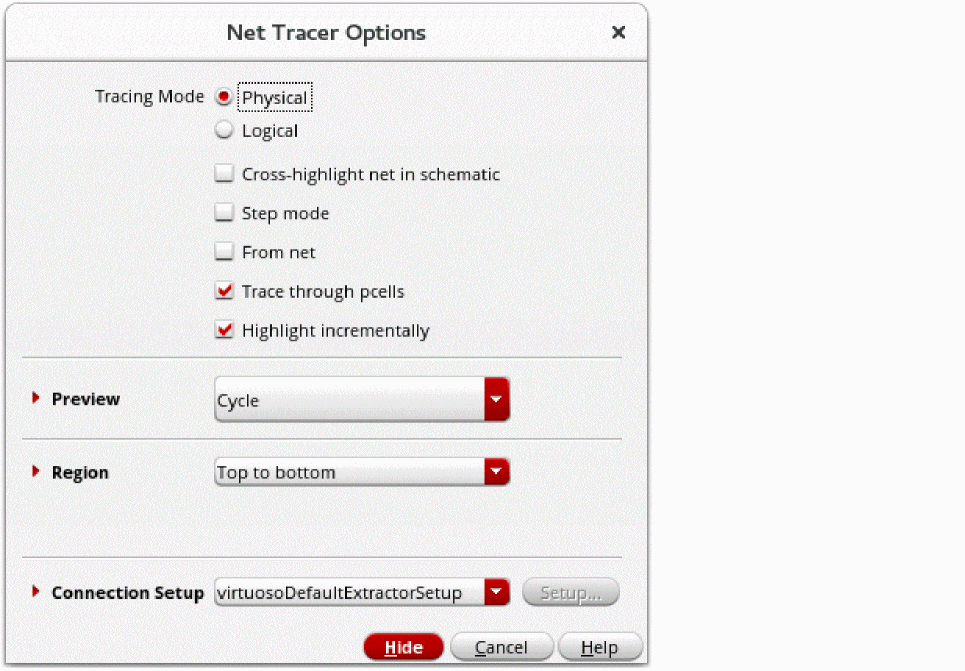 - (Optional) Choose Options – Net Tracer to open the Net Tracer Display Options form. Use the form to specify the required trace display options.