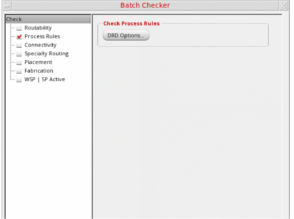 Process rule checking offers a set of options that allow you to specify the portions of the design or the types of rules to verify.