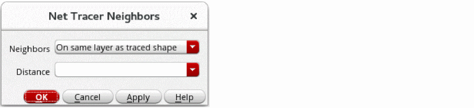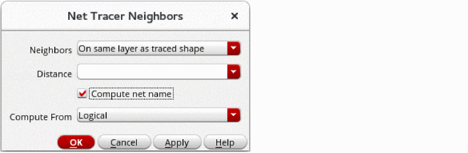 - From Neighbors, select whether you want the Net Tracer to find the neighboring shapes on the same layer as the traced shape or on any extractable layer. You can choose On same layer as traced shape or On any extractable layer.