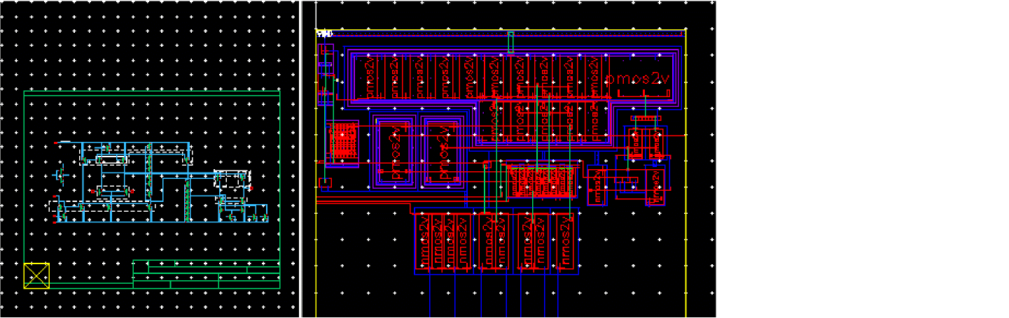 For the sample design, the common shape is connected to the terminal of a PMOS device, as displayed in the figure below.