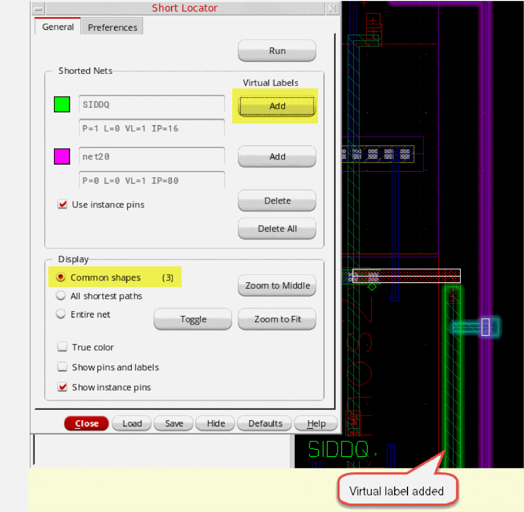 To add a virtual label to the shape, click the Add button for the corresponding net. Then, click the shape in the canvas to which the virtual label needs to be added.