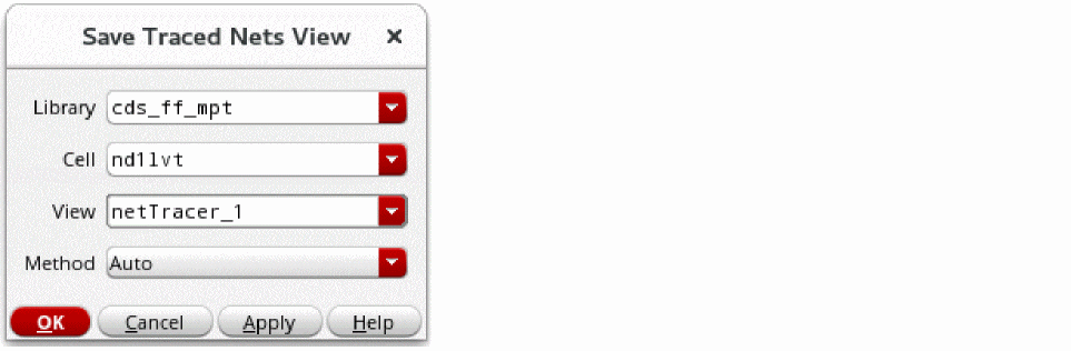 - Specify the name of the library, cell, and view in which you want to save the visible traces.