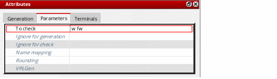 In the Parameters tab – To check field, type the name of any parameter to be checked by the Check Against Source command.
