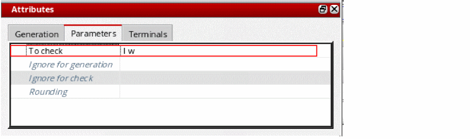In the Parameters tab – To Check field, type the name of the parameter to be checked by Check Against Source and press