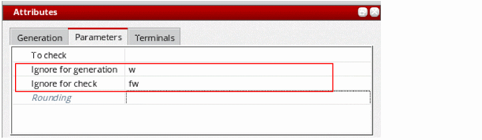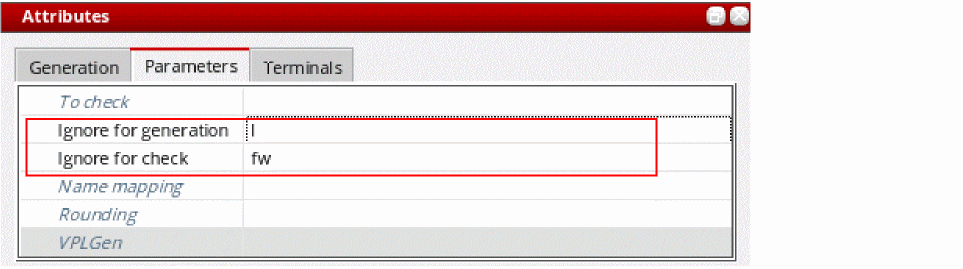 In the Parameters tab, type the name of the parameter to be ignored by layout generation in the Ignore for generation field and press