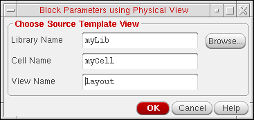 The Initialize Soft Block Parameters Using Physical View command imports soft block parameters from an existing layout cellview.