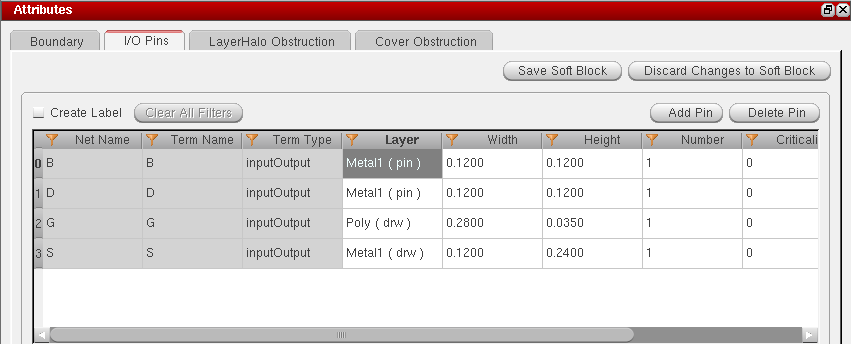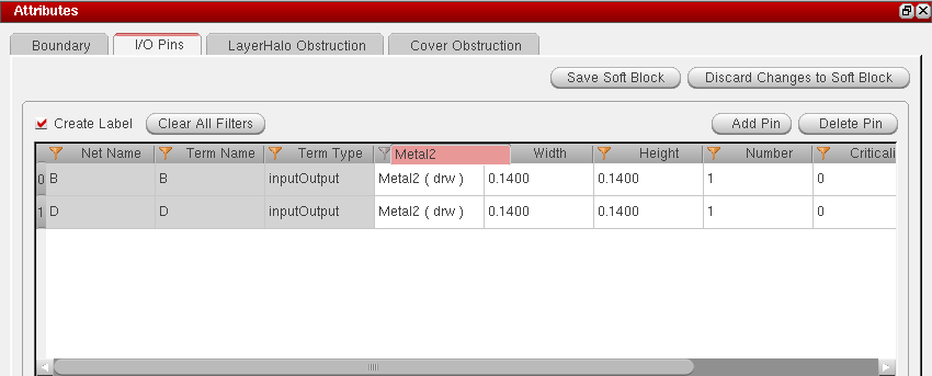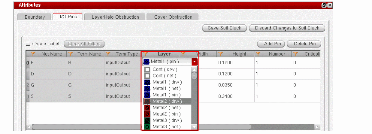 In addition to defining layer-based rules, you can define layer purpose based rules while defining the soft block parameters in the I/O Pins tab.