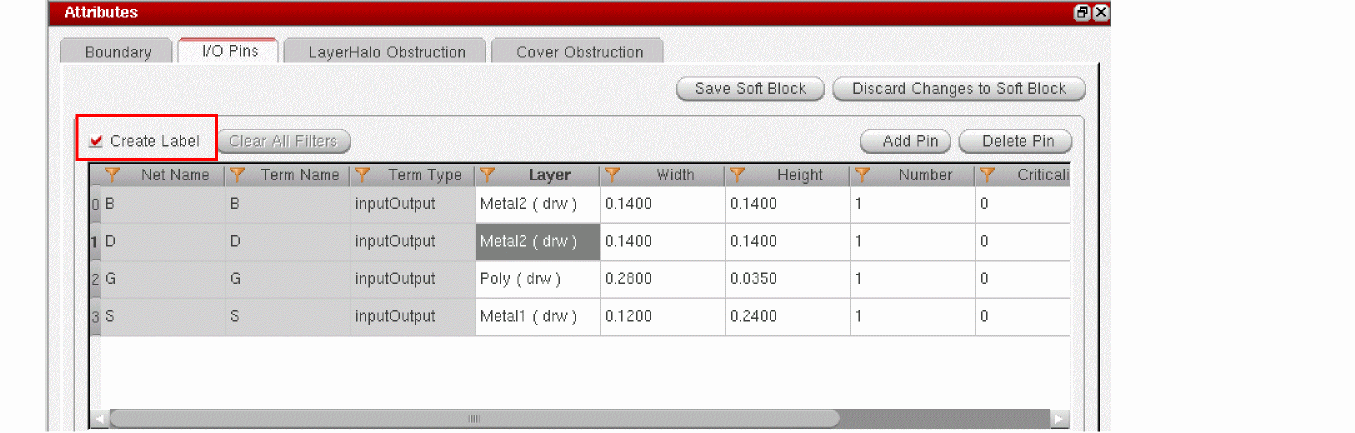 To generate labels for all the pins in the selected soft block, select the Create Label option.