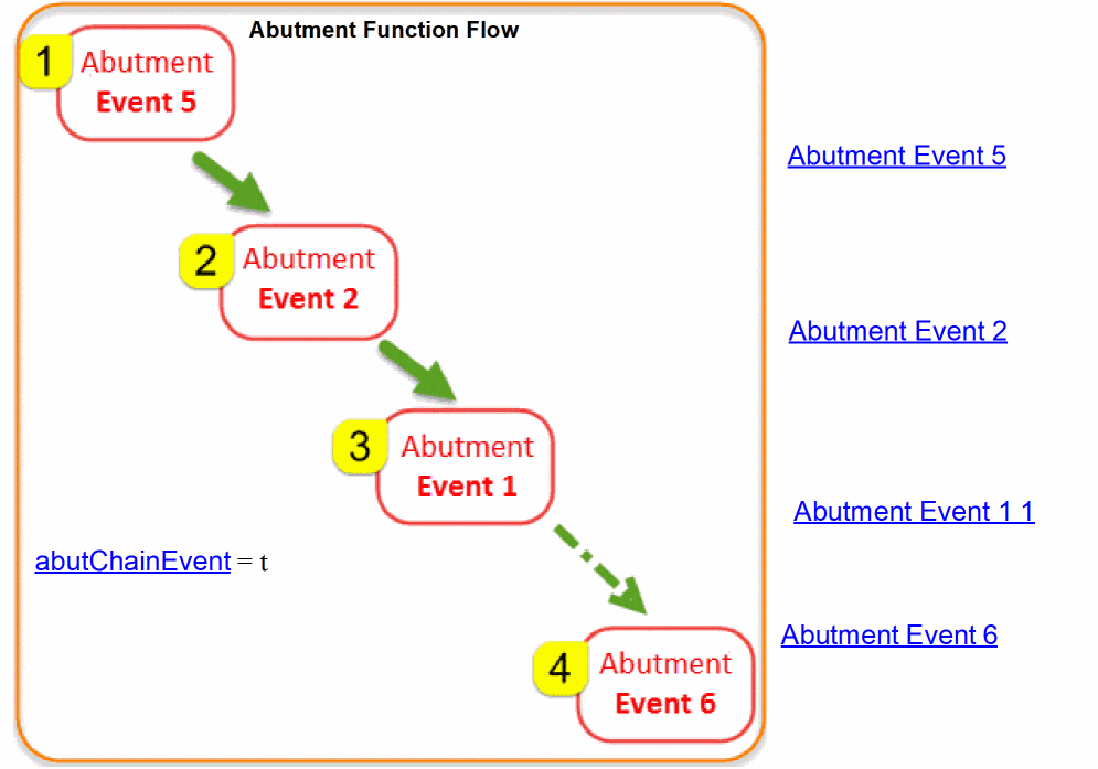 abutFunctioncalls the following events, though the order in which these events are called is not fixed. Event 4 is triggered to allow auto-spacing, when required. Event 6 is triggered only when theabutChainEventenvironment variable is set totrue.