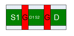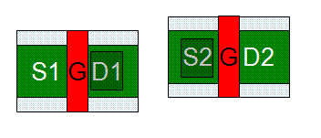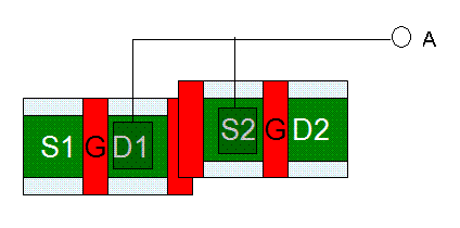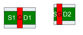 Let us now consider an example depicting abutment of dummy shapes. Here, D1 and S2, displayed in the figure below, are connected to a top-level net, netA, which has only two instance terminals.