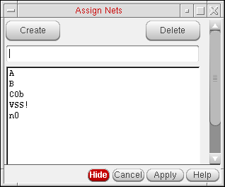 To add a pin you selected in the layout to a net listed in this form, click the name of the net in the form and then click Apply.
