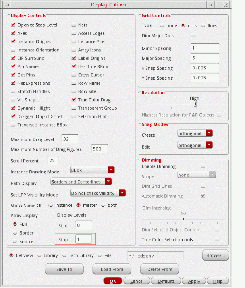 - In the Display Controls group box, under Display Levels, set the Stop value to 1.